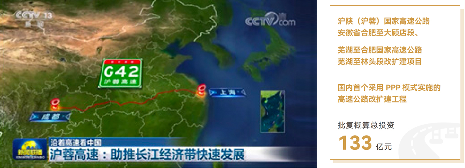 2019 年,公司承擔了國內首個采用 PPP 模式實施的高速公路改擴建工程——滬陜(滬蓉)國家高速公路安徽省合肥至大顧店段、蕪湖至合肥國家高速公路蕪湖至林頭段改擴建項目。改擴建項目總里程約 144.47 公里,批復概算總投資132.51 億元。公司積極探索交通項目投融資新機制、新模式,針對存量既有項目運營與改擴建新增部分的建設運營、原運營單位與新項目公司之間的權利義務和利益分配、改擴建后收費期限延長等難題,首創(chuàng)提出將既有部分和改擴建新增部分分別獨立實施的方案。既有部分仍由原運營單位繼續(xù)收費經營,新項目公司負責改擴建新增部分的建設及收費經營。本項目是采用 ROT 模式運作的首個高速公路 PPP 項目,既順利獲得了國家車購稅補助資金支持,又在現(xiàn)行法律法規(guī)框架體系下快速推進了既有項目收費權和資產的交易,對全國高速公路改擴建項目具有極強的借鑒和參考意義。