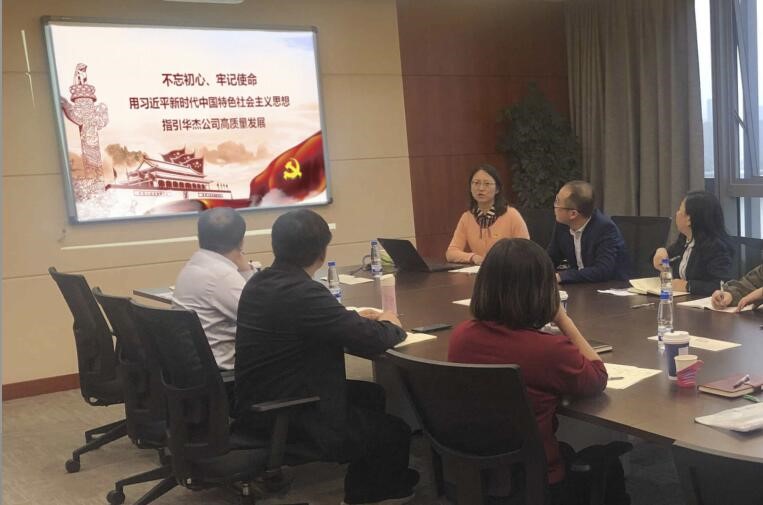研討過后田豐書記講專題黨課。全體參會人員莊嚴肅立、齊唱國歌后,認真聆聽了田豐書記講授的題為“不忘初心、牢記使命,用習近平新時代中國特色社會主義思想指引華杰公司高質(zhì)量發(fā)展”的主題教育黨課。田豐書記向大家講述了開展“不忘初心、牢記使命”主題教育的目的,以及習近平新時代中國特色社會主義思想的豐富內(nèi)涵;從“兩個基礎”等七個方面,強調(diào)了習近平總書記關于國資國企工作的重要指示要求;結合國家“交通強國”戰(zhàn)略與公司業(yè)務的發(fā)展的特點,闡述了踐行初心使命的實現(xiàn)路徑;最后,田豐書記針對公司發(fā)展中存在的問題以及公司發(fā)展規(guī)劃,提出了“運用習近平新時代中國特色社會主義思想指導實踐、推動發(fā)展”的工作要求。