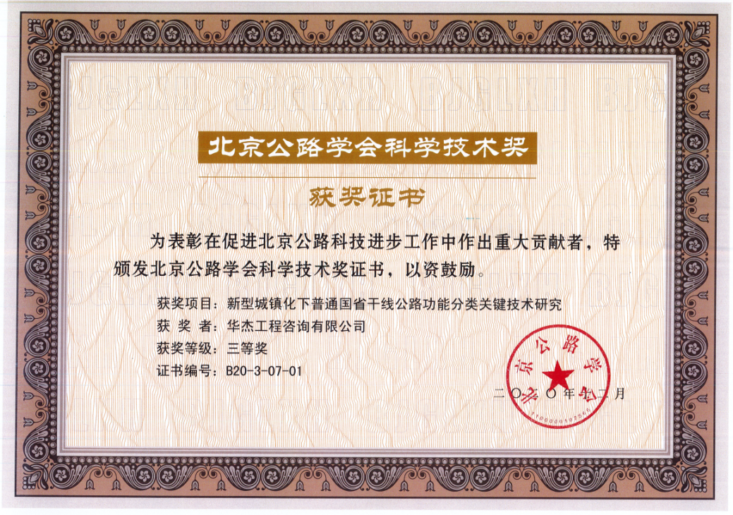 4月20日,2020年度北京公路學(xué)會科學(xué)技術(shù)獎?lì)C獎會在京召開。華杰公司申報(bào)的《港珠澳大橋跨界通行政策專題研究》《新型城鎮(zhèn)化下普通國省干線公路功能分類關(guān)鍵技術(shù)研究》兩個(gè)項(xiàng)目,分別榮獲2020年度北京公路學(xué)會科學(xué)技術(shù)獎二、三等獎。