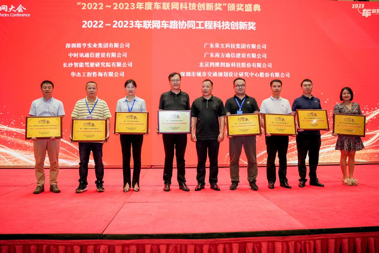 9月15日~16日,第九屆中國(大灣區(qū))車聯(lián)網(wǎng)大會在廣州舉行,大會發(fā)布了《粵港澳大灣區(qū)公路智能網(wǎng)聯(lián)設(shè)施技術(shù)規(guī)范》,公司作為總體單位代表編寫組對規(guī)范要點進行了解讀,并獲得了中國(大灣區(qū))車聯(lián)網(wǎng)大會組委會、廣東省車聯(lián)網(wǎng)產(chǎn)業(yè)聯(lián)盟頒發(fā)的2022~2023年度車聯(lián)網(wǎng)車路協(xié)同工程科技創(chuàng)新獎、車聯(lián)網(wǎng)數(shù)字交通工程創(chuàng)新獎。