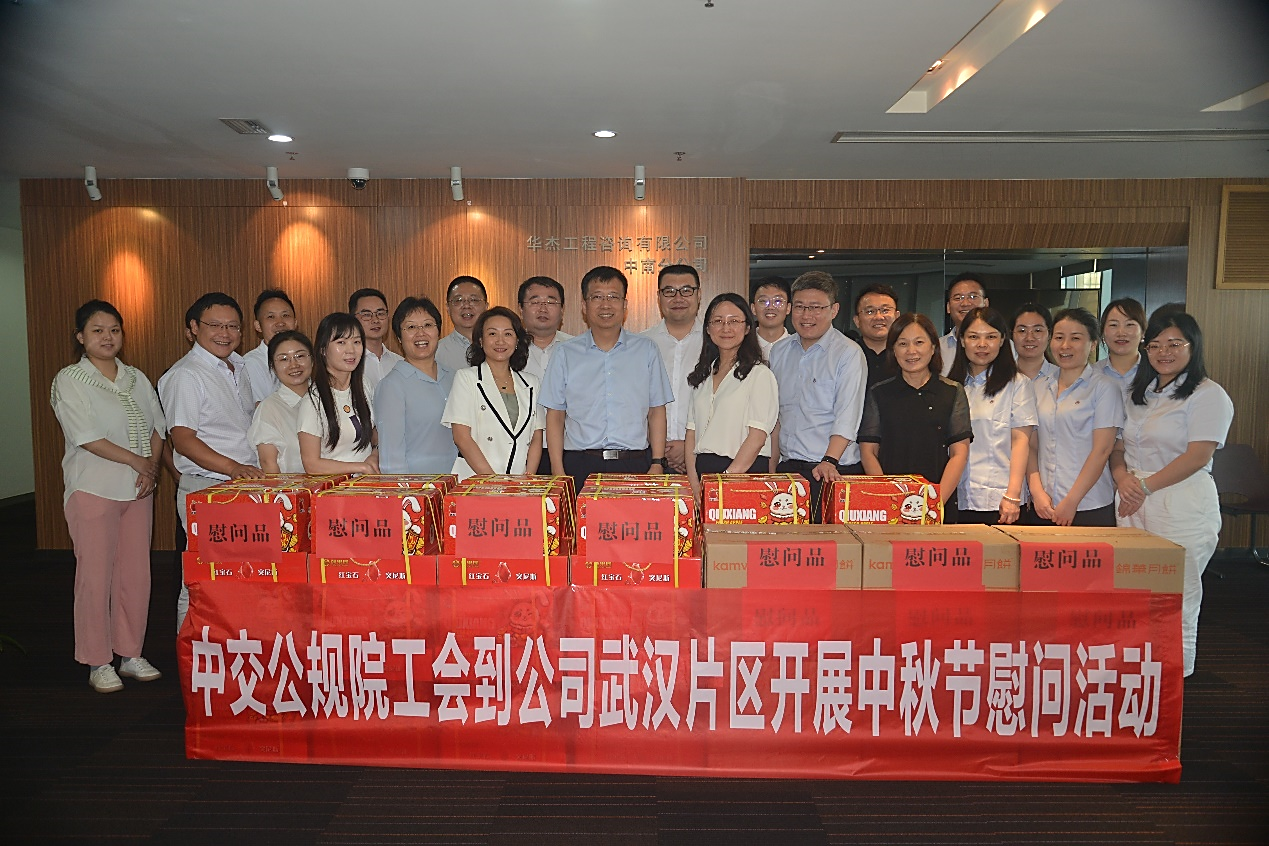 9月19日下午,公規(guī)院工會組織開展武漢片區(qū)中秋慰問活動,院黨委副書記、紀(jì)委書記、工會主席孫勇一行蒞臨華杰中南分公司慰問調(diào)研,為一線職工送來溫暖關(guān)懷和節(jié)日祝福。華杰公司黨委書記、總經(jīng)理田豐,工會主席陳克麗參加活動。